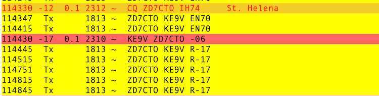 Wednesday, October 15 - I've been copying ZD7CTO during early mornings on 12 meters using FT8. I tried to work him today without luck. I captured a single return from him, but nothing more. I've worked Derek before, the last time in March of this year. I've got a theory that propagation is enhanced between here and there around the equinoxes. There might also be some aethereal magic at play given our positions above and below the equator. Saint Helena isn't particularly rare (#203 Most Wanted) but its location in the South Atlantic between Africa and South America is very interesting to me. Will try again tomorrow.